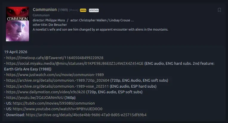 The collection on #NeoDB ( #Fediverse alternative to Letterboxd etc) now has links for: