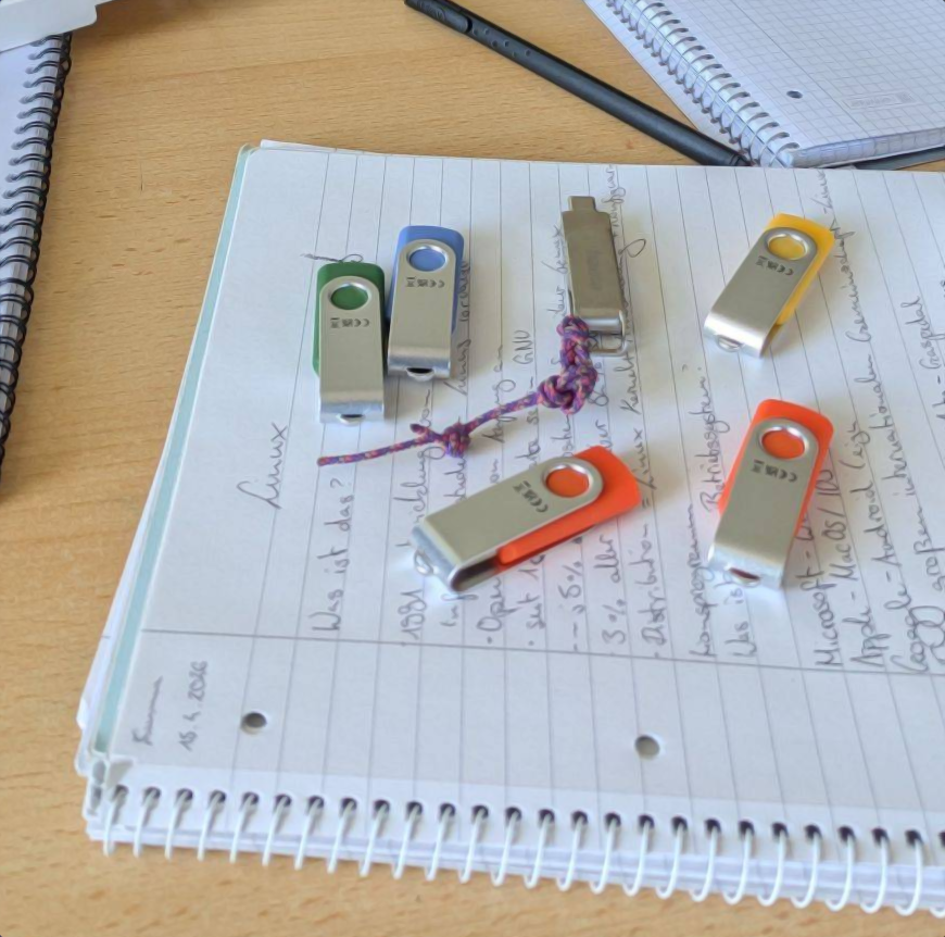 Nun noch ein paar Worte zu unserem Schul-Termin gestern: Wir konnten am Anfang der Doppelstunde einen kurzen Vortrag zu Linux und OpenSource vor 16 Schülis halten, der wohl ganz gut ankam. Dann haben wir angefangen auf 8 alten Thinkpads Linux zu installieren. Es musste doch wieder einiges improvisiert werden bis bei allen der Bootstick gebootet werden konnte. Ab da läuft die Linux-Installation ja heutzutage wie von selbst. In den kommenden Wochen freuen wir uns schon dort weiter zu machen!