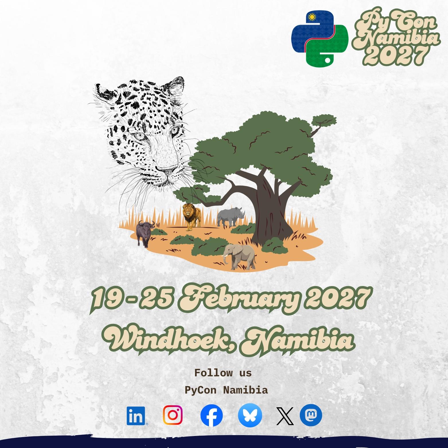 We are excited to announce that PyCon Namibia 2027 will take place from 19 to 25 February 2027 in Windhoek, Namibia.